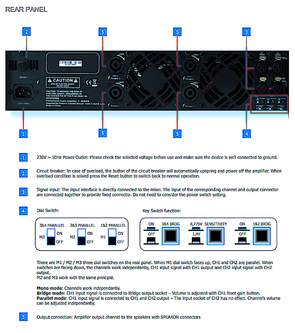 Все усилители имеют высоту 3U и расположенные на задней панели ступенчатые регуляторы уровня для быстрой и точной установки (шаг 2 dB).